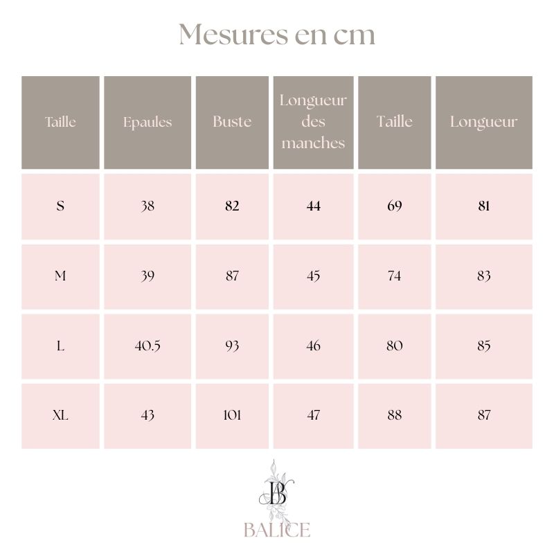 ↪ Toutes les mesures indiquées sur le tableau sont en centimètres 🧵.