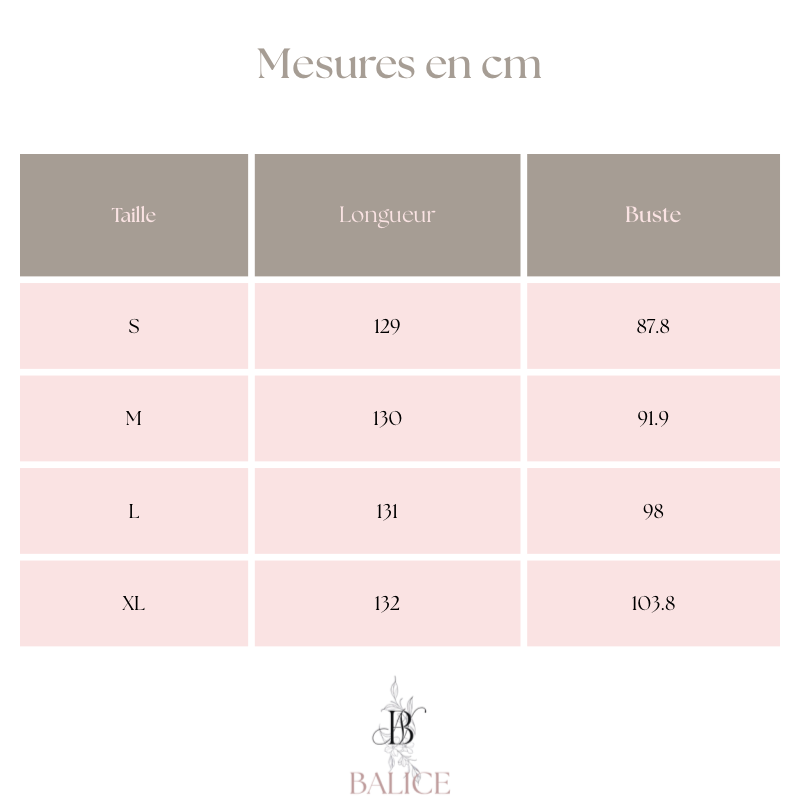 ↪ Toutes les mesures indiquées sur le tableau sont en centimètres 🧵.
