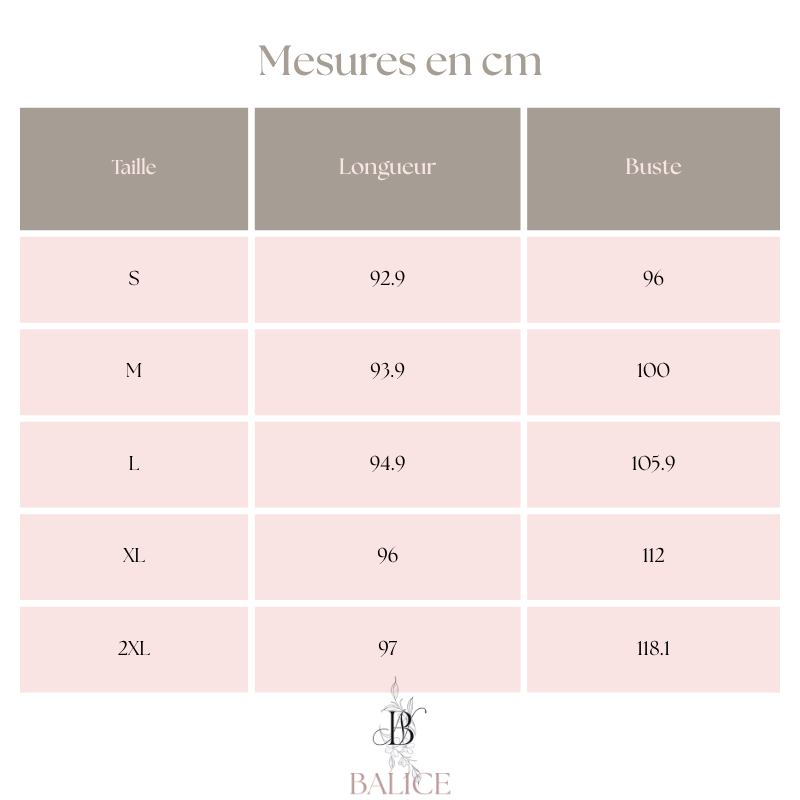 ↪ Toutes les mesures indiquées sur le tableau sont en centimètres 🧵.