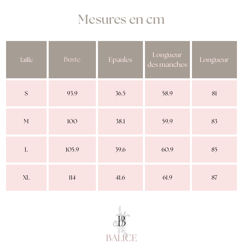 ↪ Toutes les mesures indiquées sur le tableau sont en centimètres 🧵.